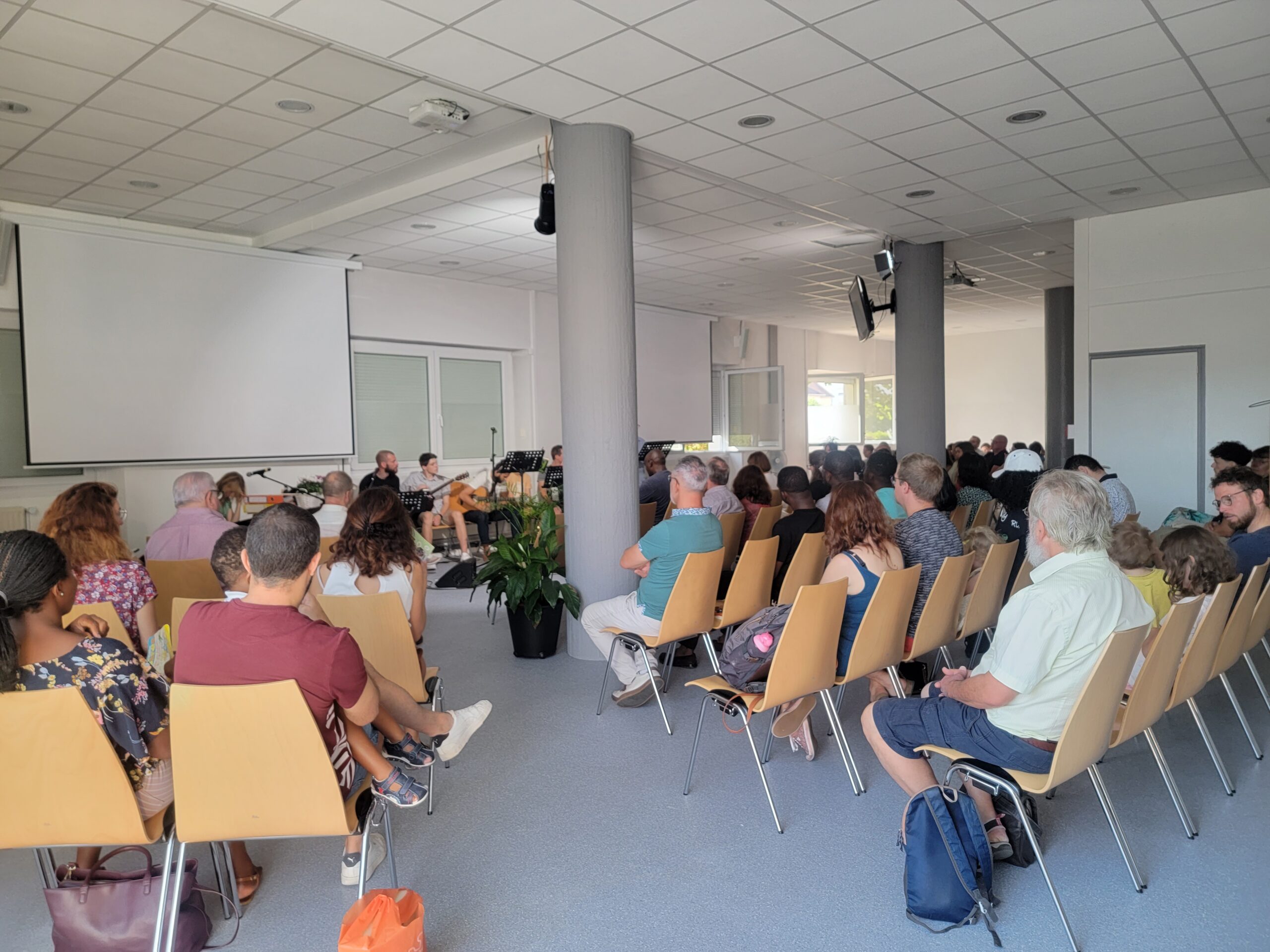 Nos célébrations rassemblent environ 80 personnes (adultes et enfants) et nous nous retrouvons le dimanche matin à 10h15 dans des locaux agréables et lumineux situés au rez-de-chaussée de l’Espace Marmier, 13 rue Xavier Marmier.